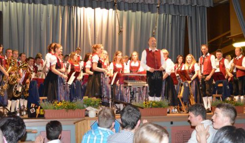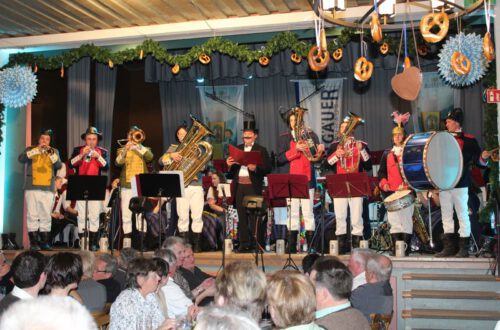 Anschließend sorgte der Musikverein mit einer bunten Mischung aus Rock und moderner Unterhaltungsmusik für ausgelassene Stimmung. Dirigent Patrick Nägeli hatte ein abwechslungsreiches Programm zusammengestellt. Zu hören gab es von aktuellen Hits wie „Delfin“ und „Sara perche ti amo“ über „Vogelwiese“ bis hin zu Rockklassiker wie „Satisfaction“. Die Sängerinnen und Sänger Cosima Aicher, Katja Fritz, Johanna und Michael Rottach, Joe Schiller, Karin Schmid und Simone Wintergerst sorgten für gute Laune und beste Stimmung. Die Altusrieder Musiker sorgten wieder einmal für einen amüsanten Abend mit viel Gaudi und super Stimmung.